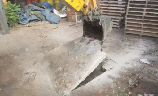 Découpage propre du bitume pour réalisation de sondage au tractopelle - FIRMINY (42).